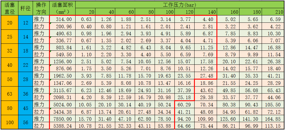 其中:P為壓力,單位:bar A:為面積, 單位:平方毫米 F:為推拉力,單位千牛(華為噸則除以10即可)