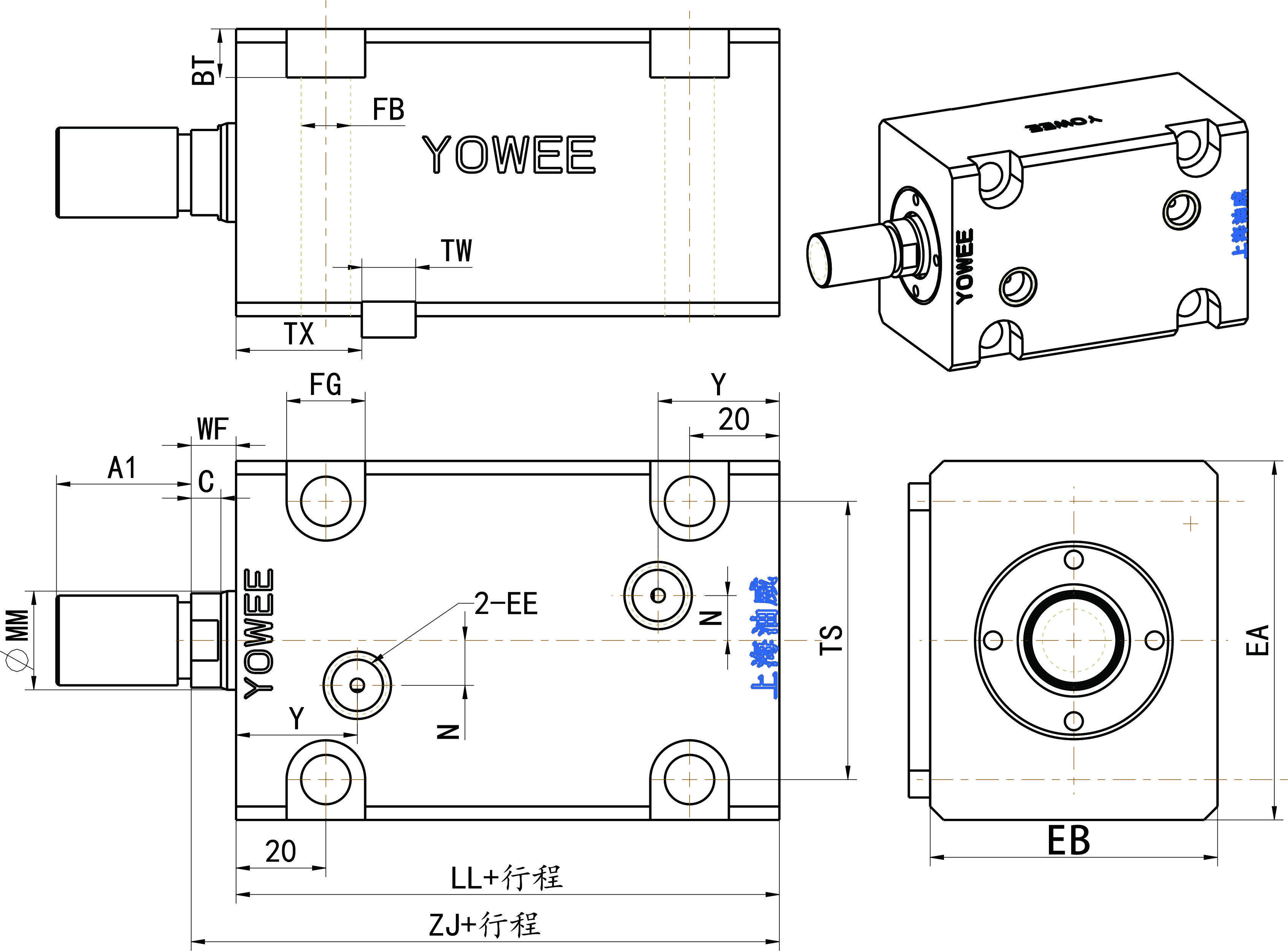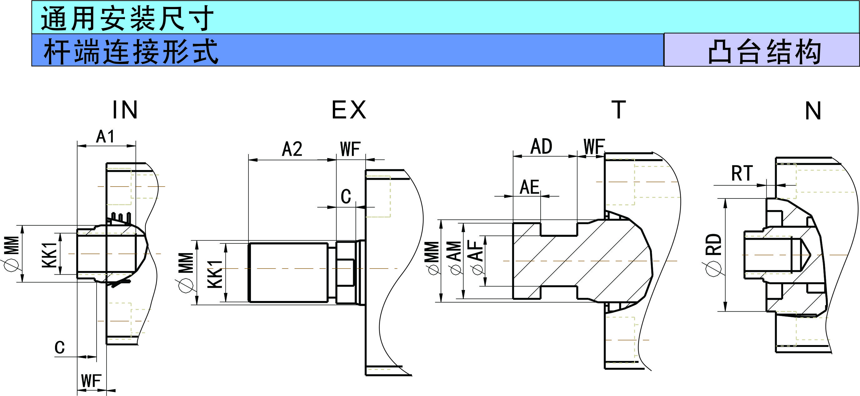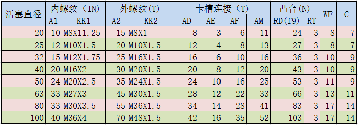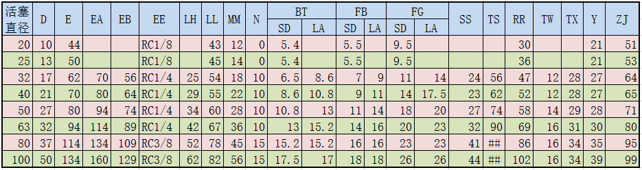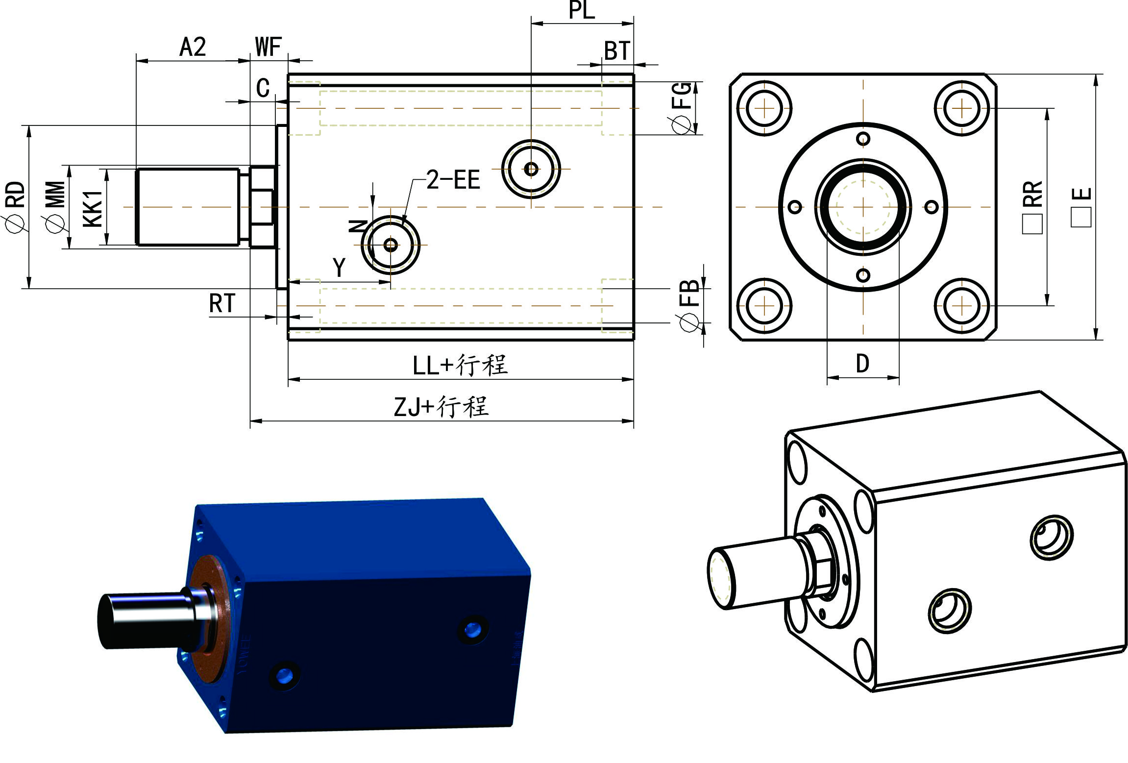 薄型油缸尺寸表-通用型貫通螺釘安裝