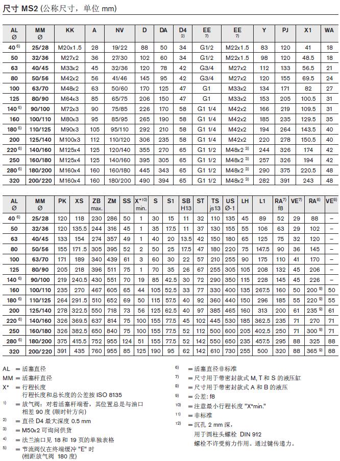 CXHD系列薄型油缸基本參數