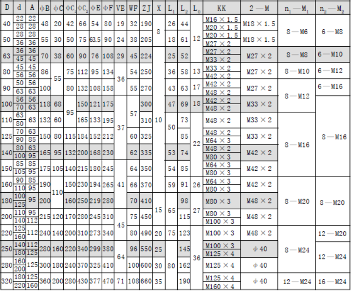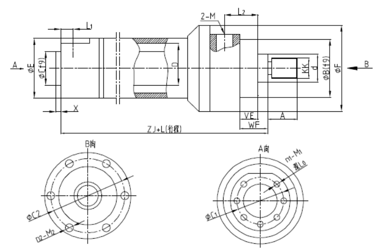 Y-HG1系列冶金油缸-F1缸頭長方法蘭安裝方式