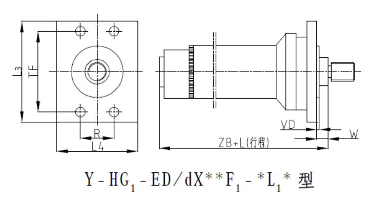 Y-HG1系列冶金油缸-F1缸頭長方法蘭安裝方式