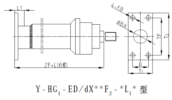 Y-HG1系列冶金油缸-F1缸頭長方法蘭安裝方式