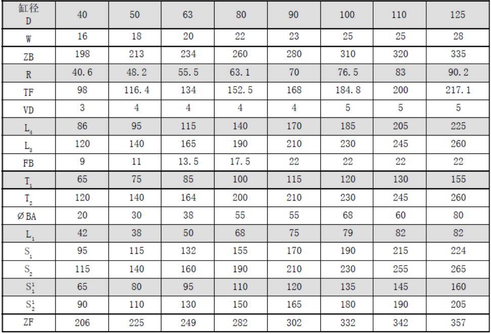 Y-HG1系列冶金油缸-后端矩形法蘭安裝 在此尺寸表中,未給出Y-HG1系列冶金油缸的基本尺寸,如需要,請查詢Y-HG1冶金油缸基本型。