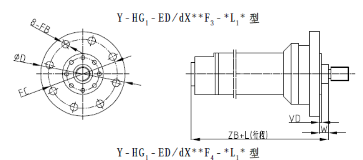 Y-HG1系列冶金油缸-F2缸蓋長(zhǎng)方法蘭安裝方式