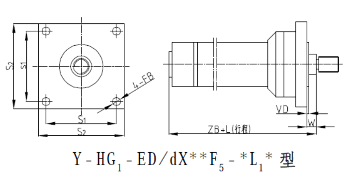 Y-HG1系列冶金油缸-F5缸頭端方法蘭安裝方式