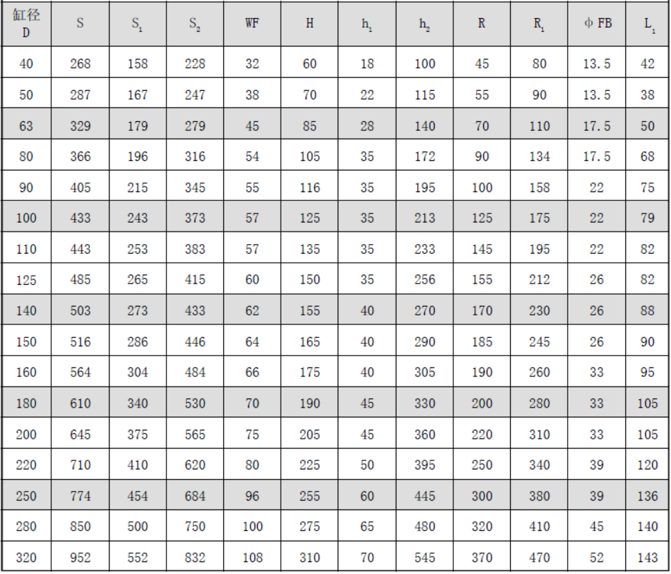 CXHD系列薄型油缸基本參數(shù)