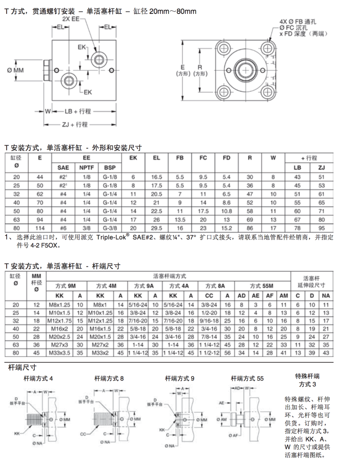 T方式,貫通螺釘安裝-雙活塞桿缸