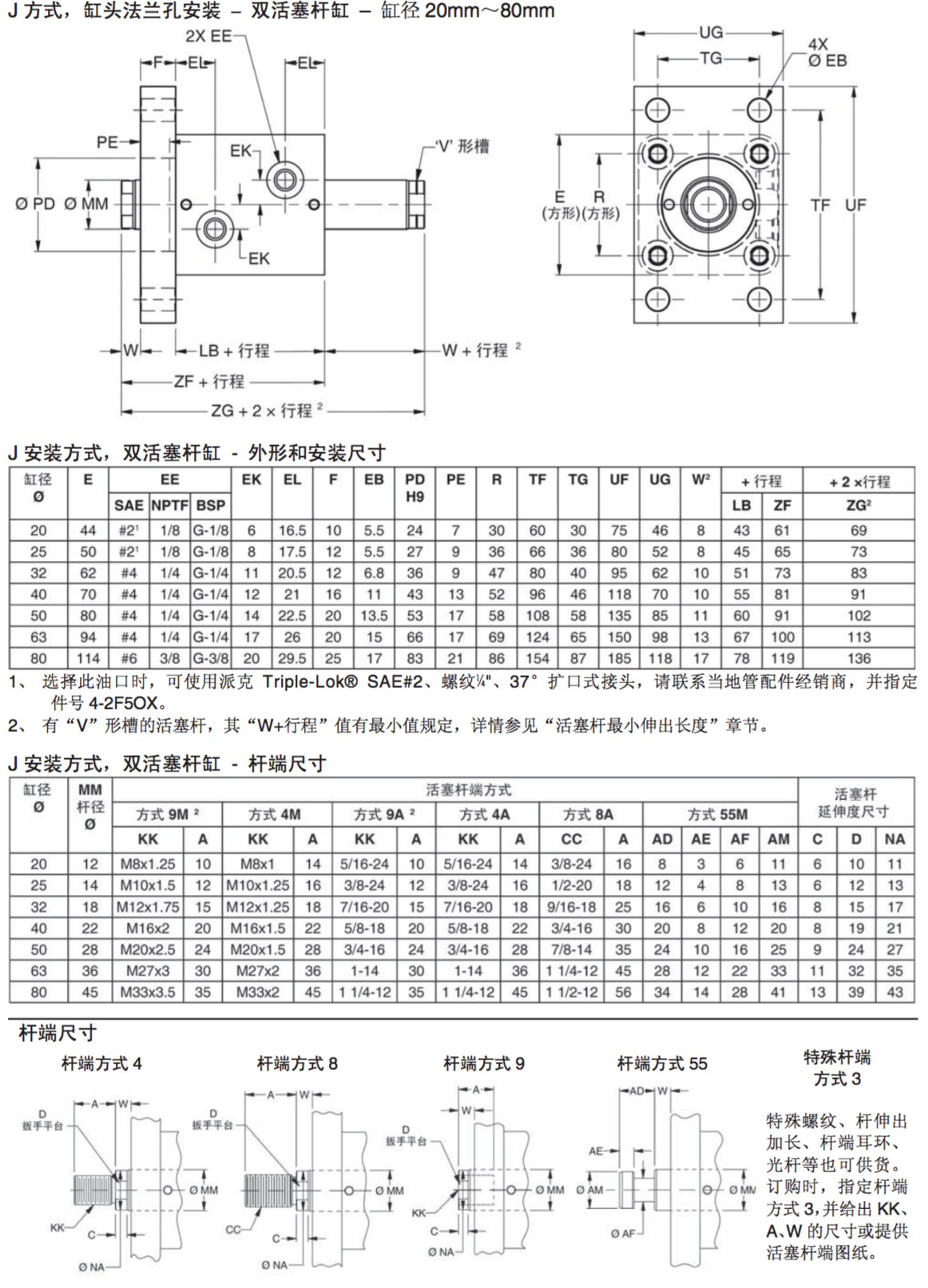 J方式,缸頭法蘭孔安裝-雙活塞桿缸