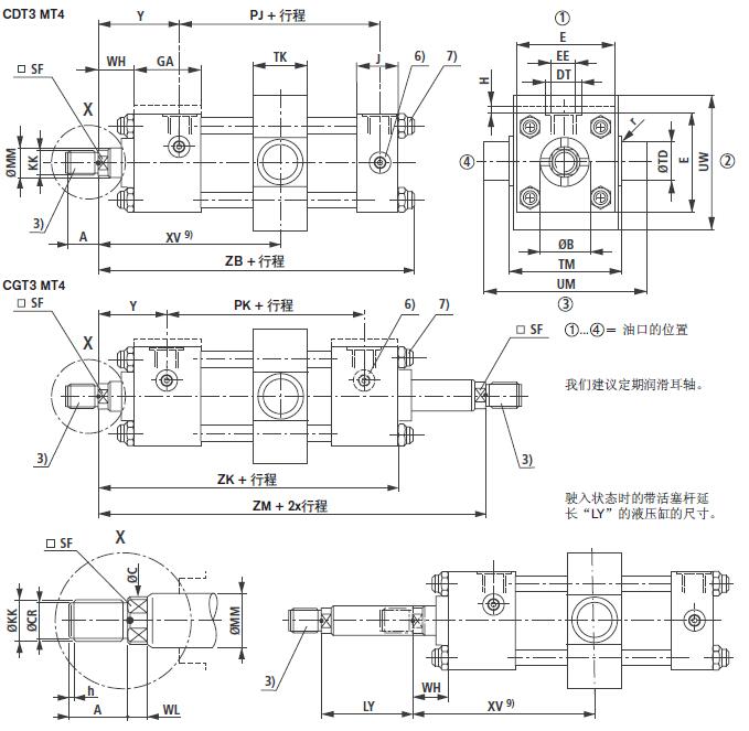 CDT3標(biāo)準(zhǔn)油缸 ,中間耳軸安裝方式-MT4
