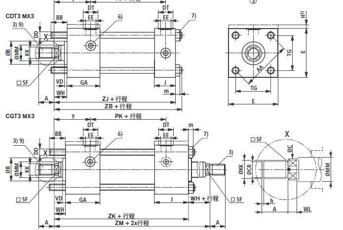 CDT3標準油缸 ,后前拉桿安裝方式-MX3