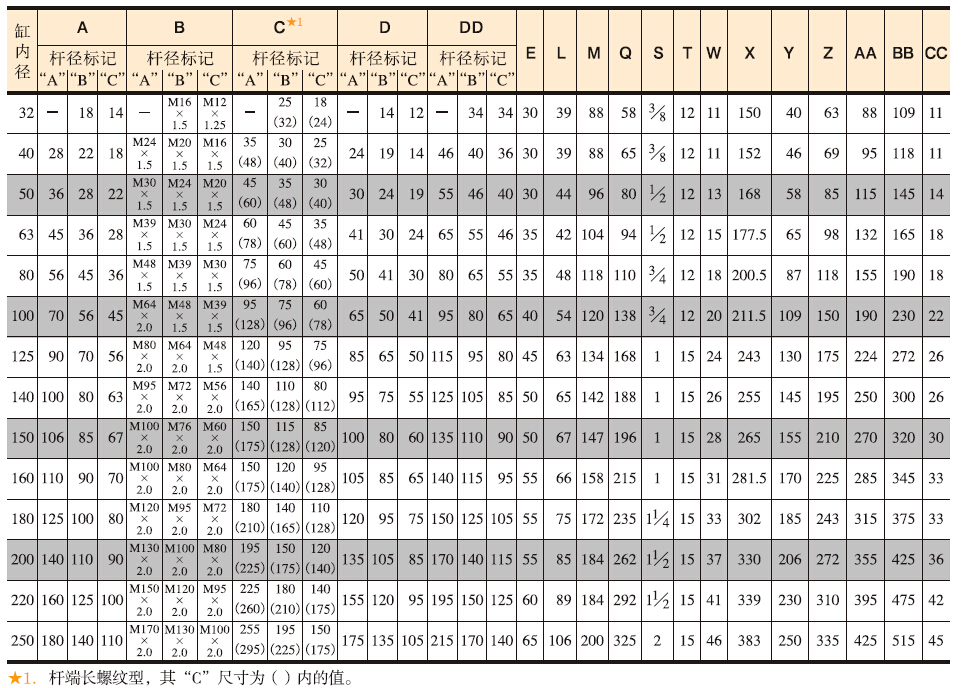 CXHD系列薄型油缸基本參數(shù)