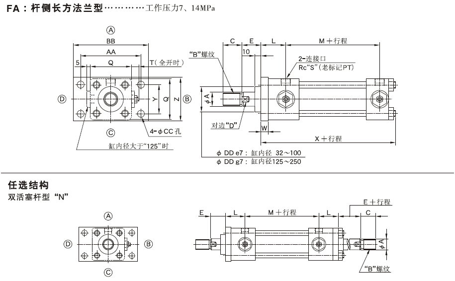 CJT系列標準拉桿油缸-前法蘭安裝方式-FA