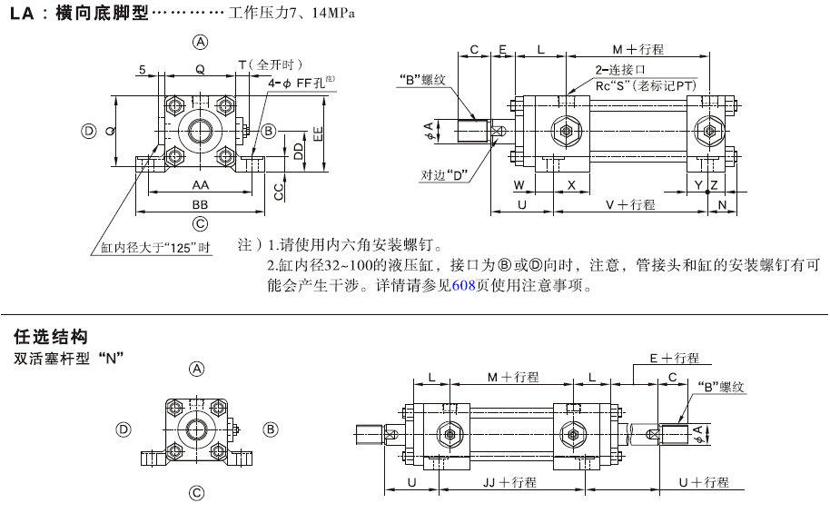 CJT系列標準拉桿油缸-橫向底腳安裝方式-LA