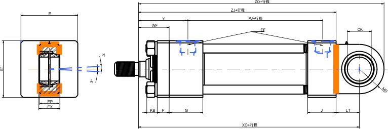HMI/HMD重載拉桿油缸后耳環(huán)帶關(guān)節(jié)軸承安裝方式