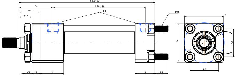 HMI/HMD重載拉桿油缸后拉桿安裝方式 代號(hào):TC 符合標(biāo)準(zhǔn):ISO 6020/2 同力士樂(REXROTH)CDT3系列液壓缸,美國(guó)派克(HMI/HMD)系列液壓缸