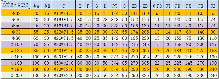 CXHD系列薄型油缸基本參數(shù)