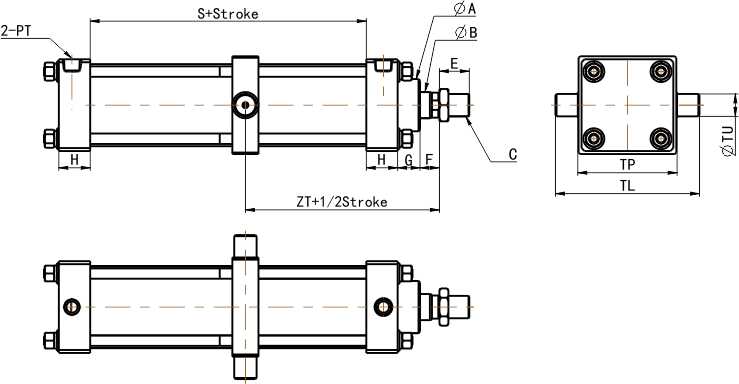 輕系列拉桿式油缸中間鉸軸連接-TC